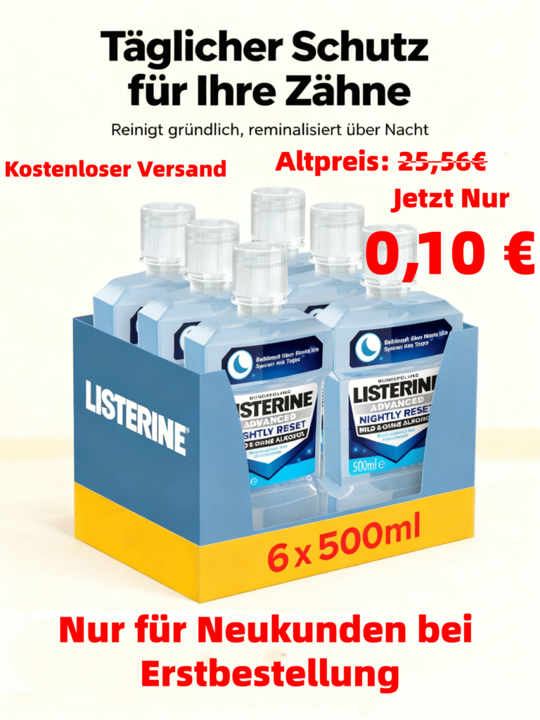 LISTERINE Advanced Nightly Reset milder Geschmack (6×500 ml), Mundspülung zur Reminalisierung des Zahnschmelzes, bekämpft über Nacht die Spuren des Tages und reinigt tiefenwirksam