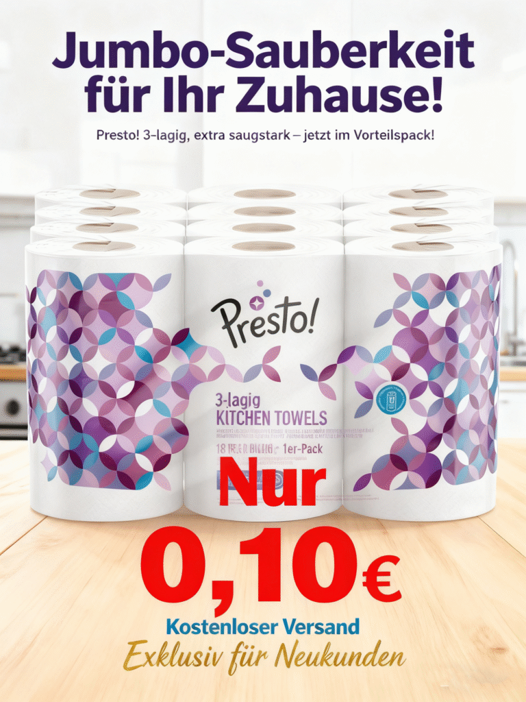 Marke: Presto! 3-lagig Jumbo Küchenrollen, weiß, 18 Rollen, 1er-Pack