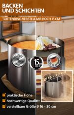 Der Kuchenring rund verstellbar von 16-30 cm dient zum Backen, Schichten, Füllen und Dekorieren.