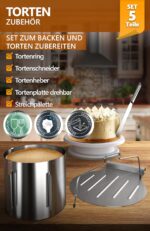 5-teiliges Basis-Set zum Backen und Torten zubereiten. Enthält alle Backutensilien, die Hobbykonditoren für die gelingsichere Torten-Zubereitung brauchen. Set-Inhalt: Tortenring hoch 15 cm + Tortenschneider + Tortenheber + Streichpalette + Tortenplatte drehbar.