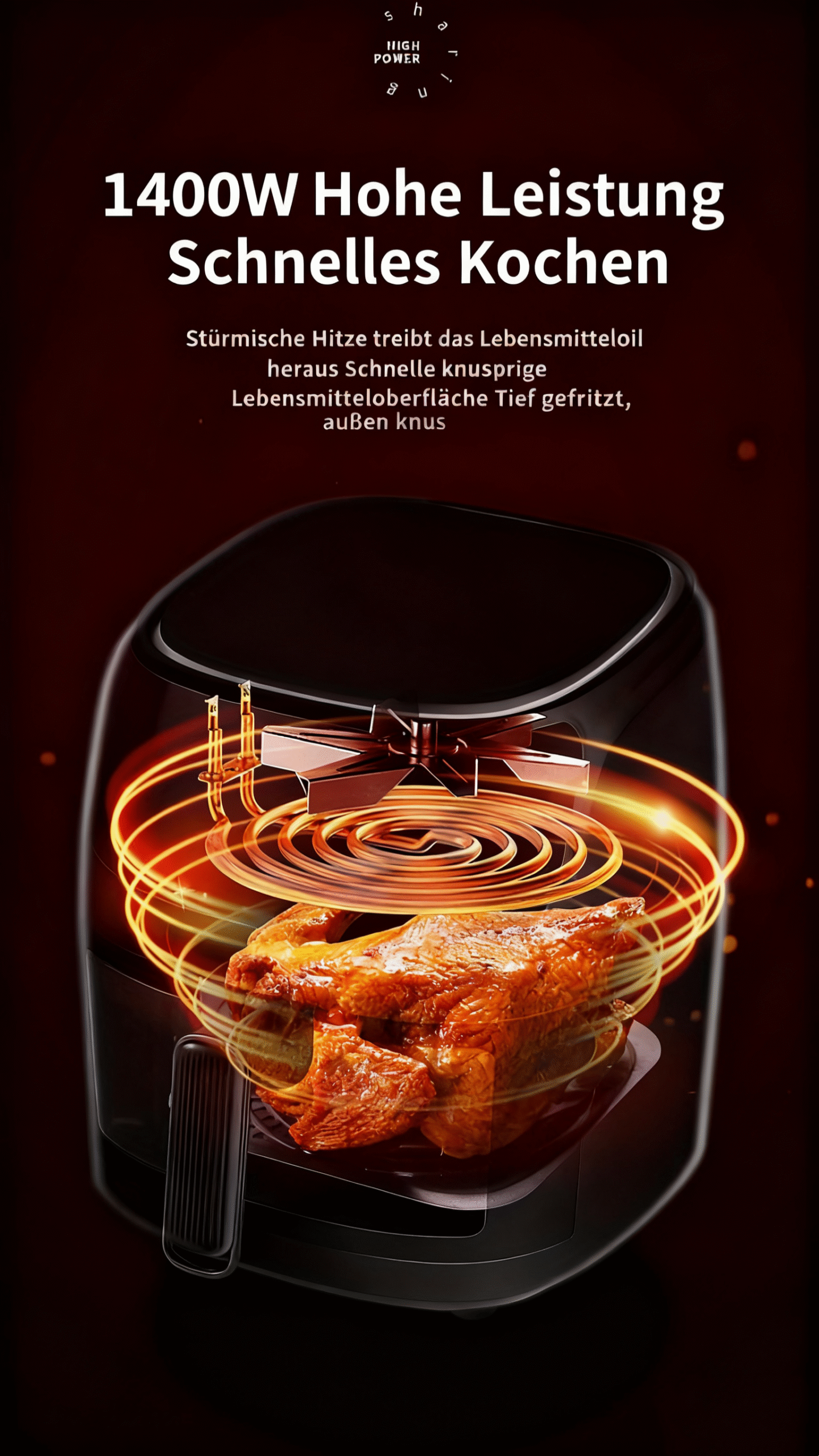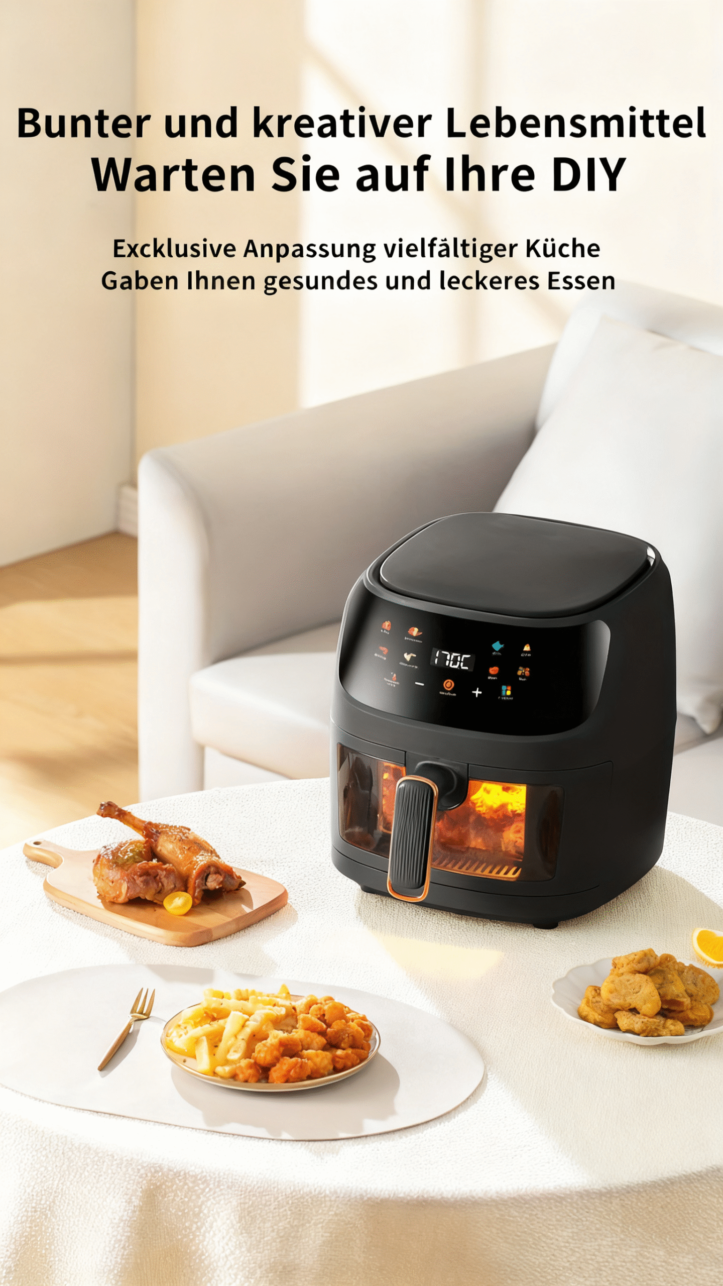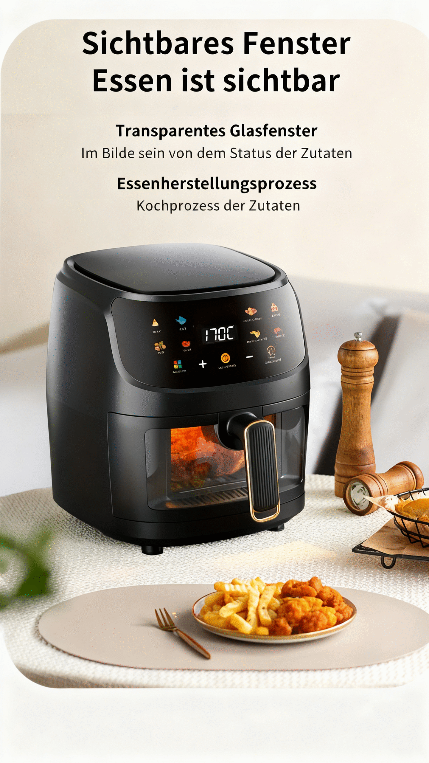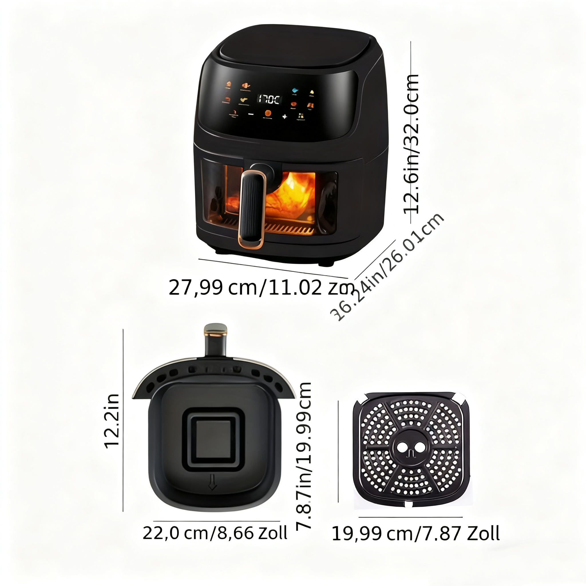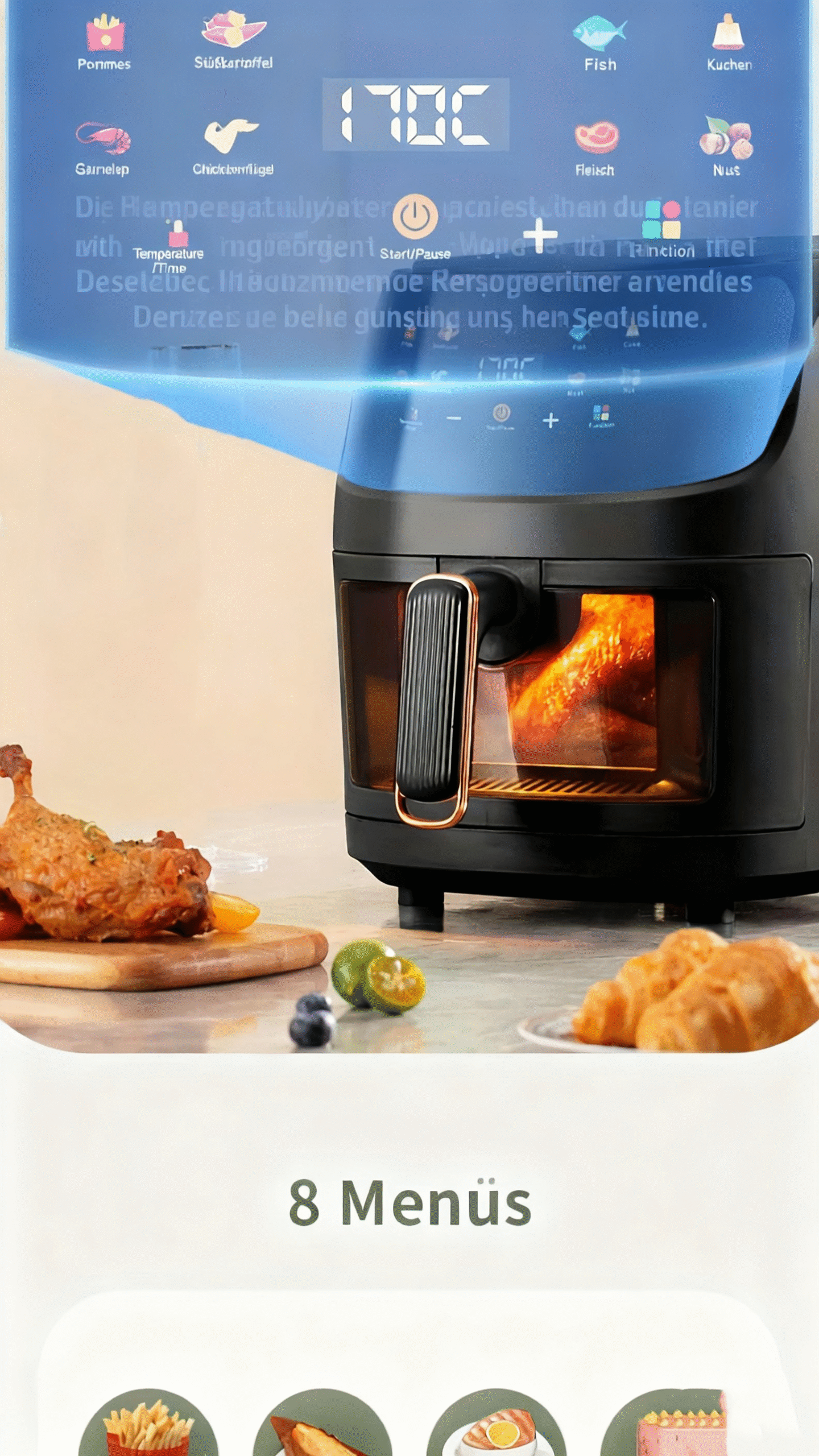 1 Rezension für 6L Kapazität Touchscreen Airfryer mit großem Farbdisplay, 1400W leistungsstarker Fritteuse für Pommes frites und Hühnchenflügel, digitale Temperaturregelung und Timer, Eisenkonstruktion, europäischer Stecker (220-240V), Küchengerät, schickes Küchenzubehör, langlebiges Küchenzubehör