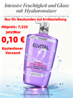 Das L’Oréal Paris Elvital Hydra Hyaluronic Shampoo versorgt dein Haar mit einem Feuchtigkeitsboost! Das Haar wird täglich durch die Umwelteinflüsse strapaziert und ausgetrocknet. Die eigens für feuchtigkeitsbedürftiges Haar entwickelte Formel, angereicher