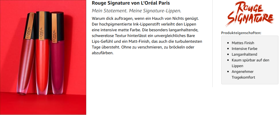 Ich habe den L'Oréal Paris Rouge Signature 110 I Empower bekommen – super schöne Farbe, leicht aufzutragen und hält wirklich lange! Lieferung war schnell, alles top!