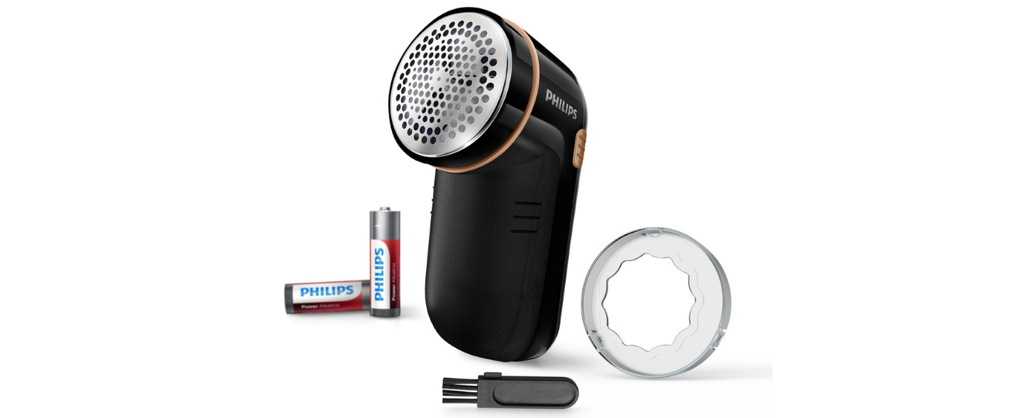9 Rezensionen für Philips Fusselentferner für alle Kleidungsstücke, entfernt kleine Knötchen, 2 Höheneinstellungen, batteriebetrieben (2 Philips AA-Batterien inkl.), 8 x 12.3 x 5.8 cm, schwarz-Gold