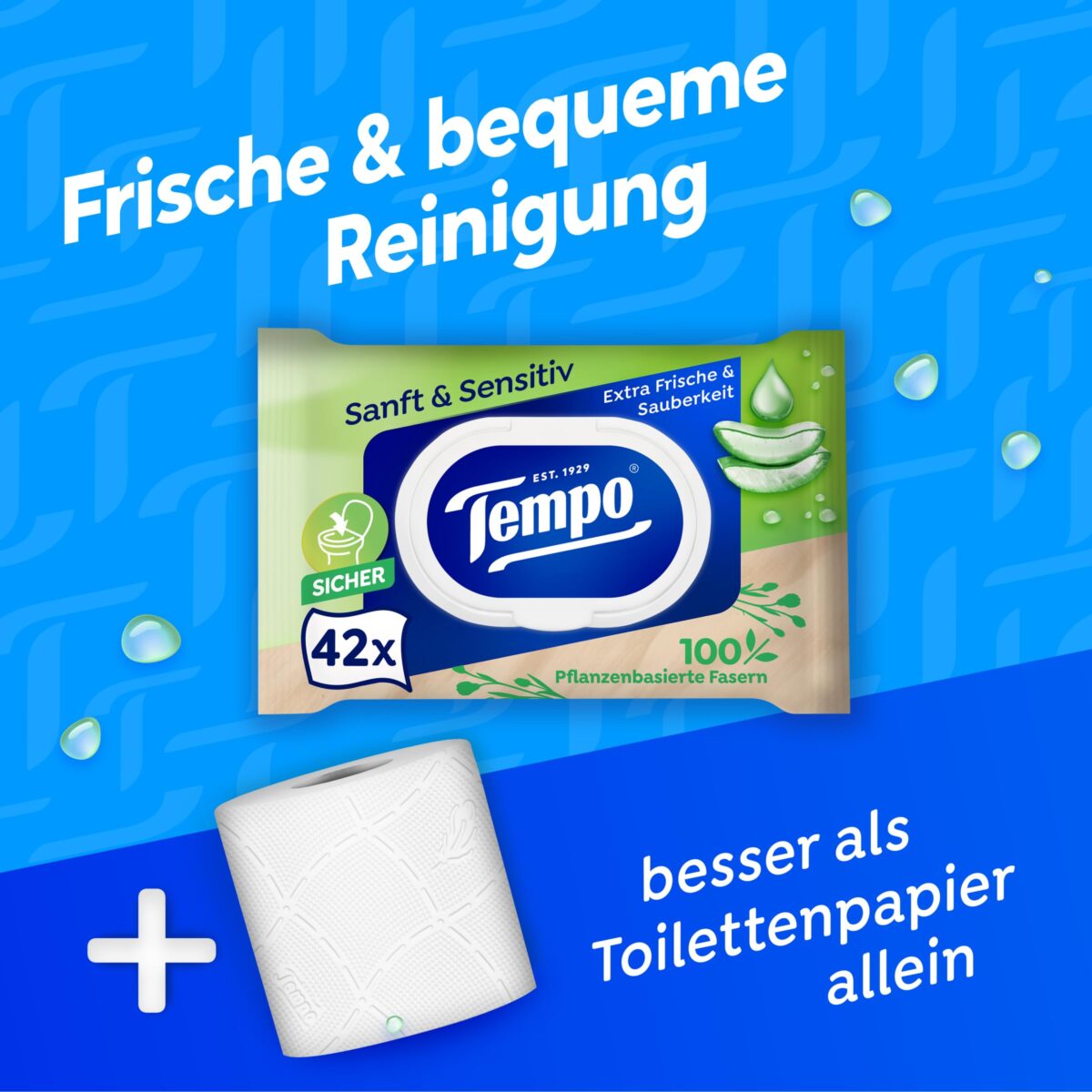 Tempo feuchte Toilettentücher sind dank höchster Markenqualität besonders pflegend und die