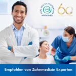 Zwischen den Zähnen pausieren, um 99,9 % des Plaque-Biofilms nach einer 3-sekündigen Exposition an den behandelten Bereichen zu entfernen.