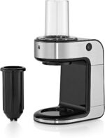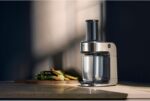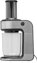 seiner fünf hochwertigen Schneideinsätzen schneidet, hackt und raspelt er blitzschnell alle Obst- und Gemüsesorten sowie harte Zutaten wie Nüsse und Käse. Ob z