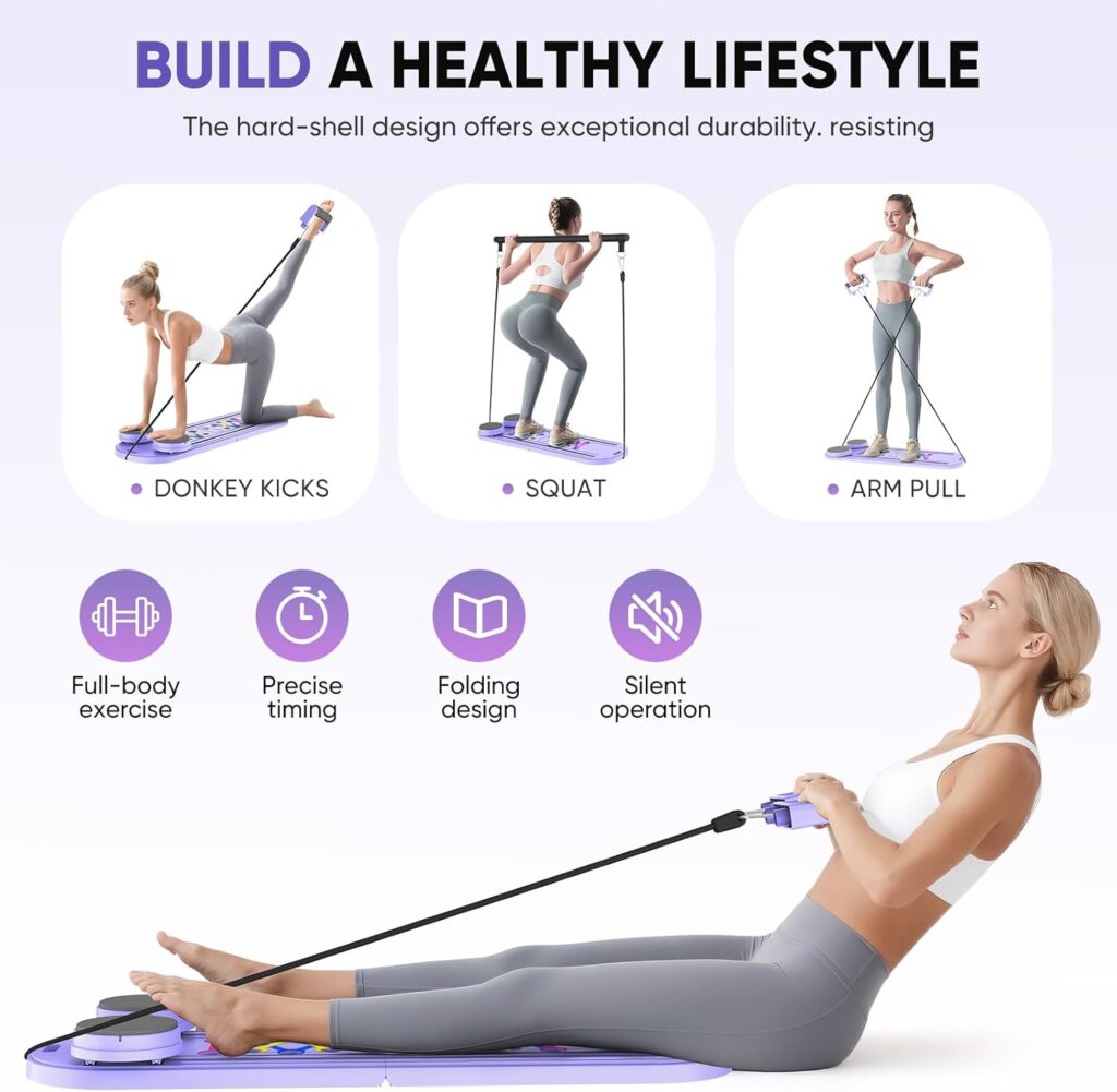 Pilates-Reformer-Set, 5-in-1 Pilates-Reformer mit LED-Zähler, automatischer Rückprallrolle, multifunktionales Übungsbrett für Heimübungen