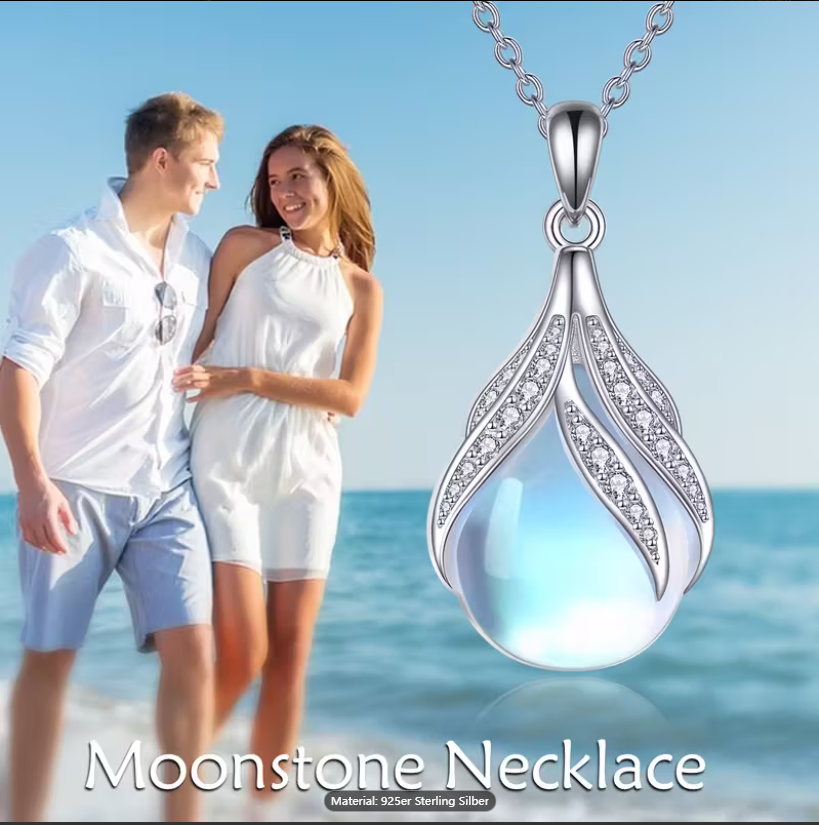 925 Sterlingsilber Anhänger mit Mondstein – Geburtstagsgeschenk für Frauen und Männer, perfekt zum Erntedankfest