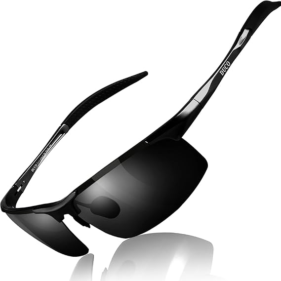 DUCO Herren Sportbrille Polarisierte Sonnenbrille Fahrerbrille Ultraleichte Al-Mg Metallrahmen UV400-Schutz Männer Sonnenbrillen 8177S